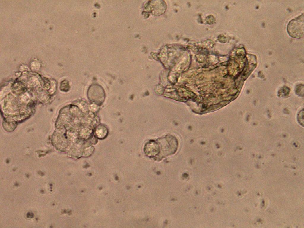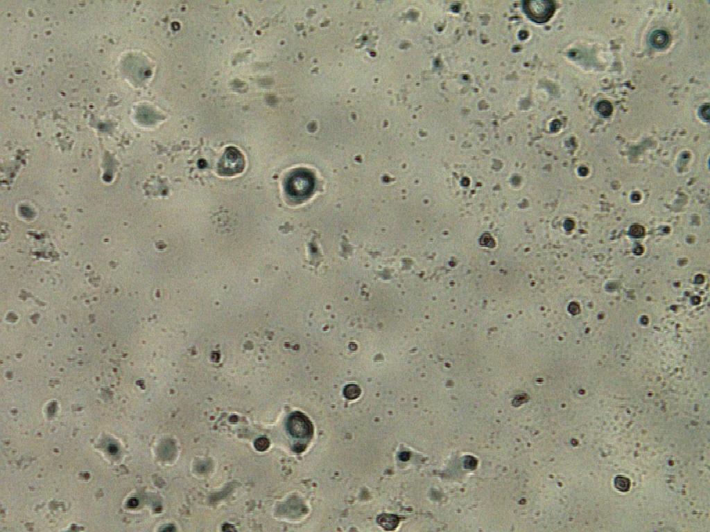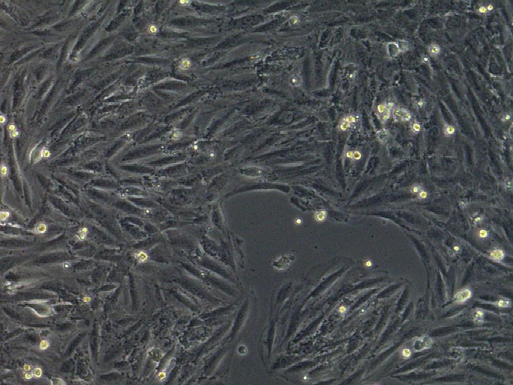 我是第一次养细胞的新手,望大神们指点! 第一张 细胞传代后(第25代)长了4天才长成这样子,按理说以前细胞长得速度挺快的,不知道是不是感染了支原体,细胞生长速度变慢了,而且状态下降了,很困惑啊,还有就是那些圆圆亮亮的小圈圈是什么呀?求解~ h9c2 20.jpg |