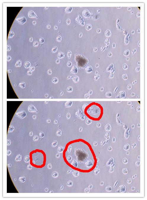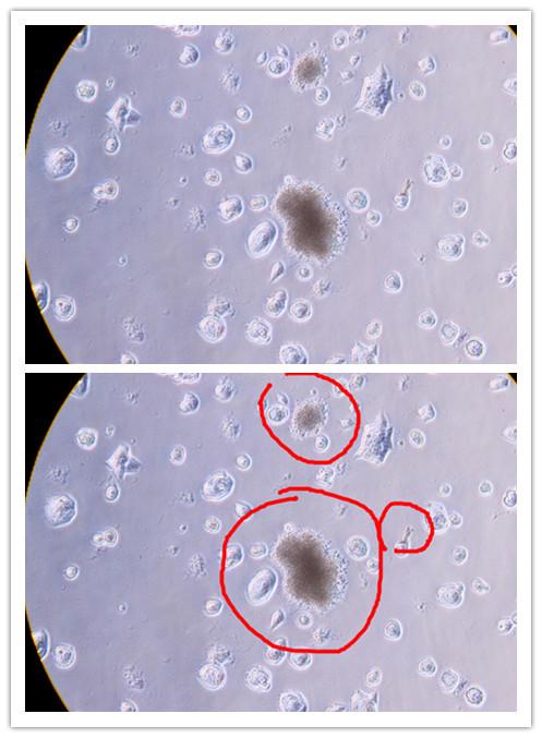 疑似霉菌,放一段时间看看长大不。。如果是,建议重新复苏吧,把所有你用的耗材和仪器,该消毒的消毒,该灭菌的灭菌。。。面对污染问题,重新复苏永远是正解。。。