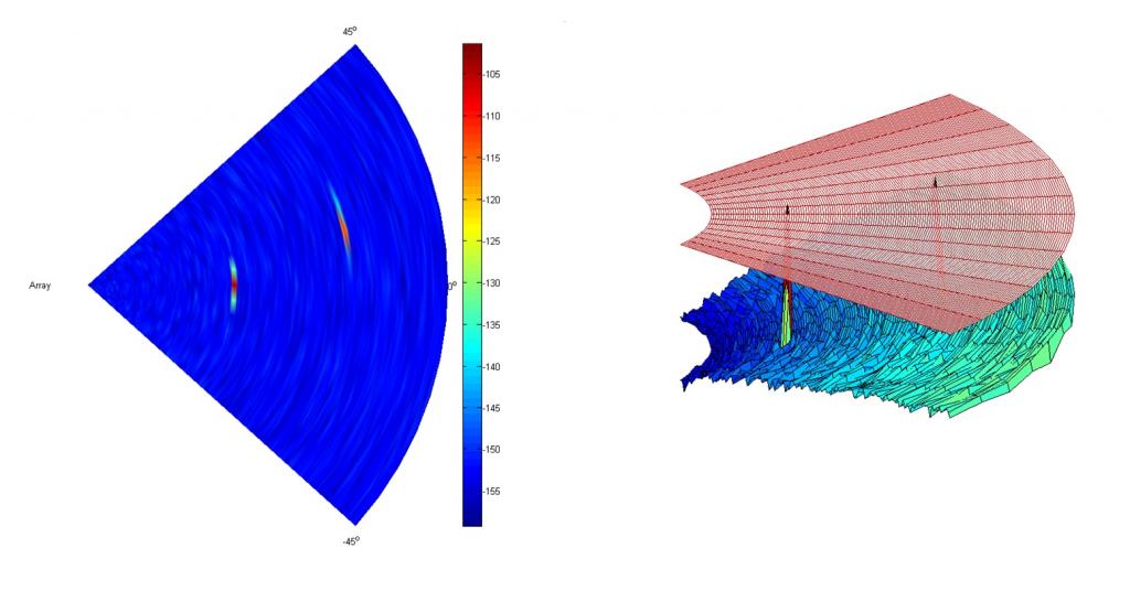 就是三维极坐标图,距离r,方位theta,功率用颜色表示。貌似应该用surfc()