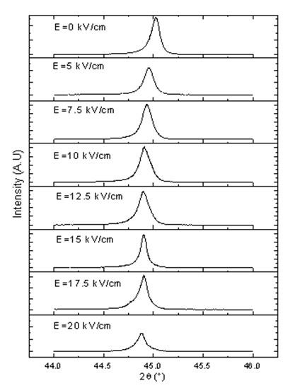 大家好,我现在测试了单晶(002)面不同电场下的2thera,和(220)不同电场下的2theta,怎么计算晶格常数啊,谢谢。