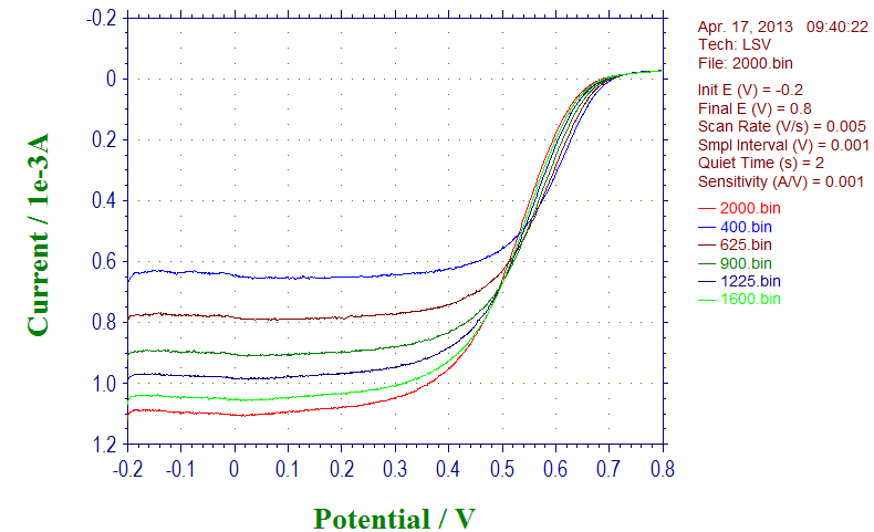 用RDE对Pt/C催化剂进行ORR不同转速极化曲线的测试时,出现这样的情况,是什么原因呢?求高手指教。