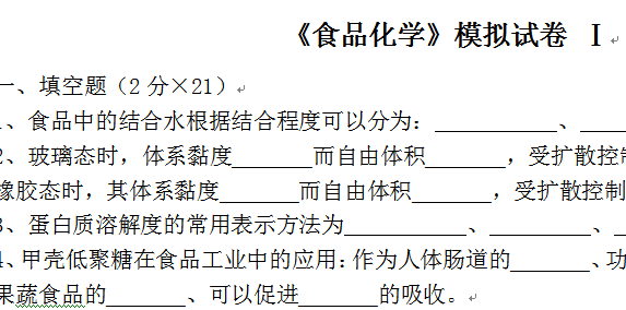 食品化学试题 附带答案(三套)值得一看本涵盖了食品化学所有较重要的知识点
