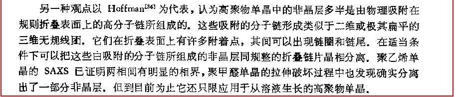我觉得算吧。问了一下做结晶的同学,也觉得算微相分离,但说不清原因。 晶区和非晶区应属不同的相,两相密度不同,存在明显相界面。 结晶和熔融属于一级相转变过程。 但不知道相转变是否与相分离一致? 有关聚合物的相及相变可参考“高分子物理——杨玉良、胡汉杰”的第八章。 如果是嵌段共聚物的话,不同嵌段间,性质不同,会发生通常理解的不同组分之间的微相分离。http://www.chem.pku.edu.cn/cheneq/articles/aps-gwp.pdf 微相分离的帖子http://muchong.com/html/200907/1446930.html 另外书上有段话,你看看附件 111111.jpg [ Last edited by 715568730 on 2013-4-21 at 15:36 ] |