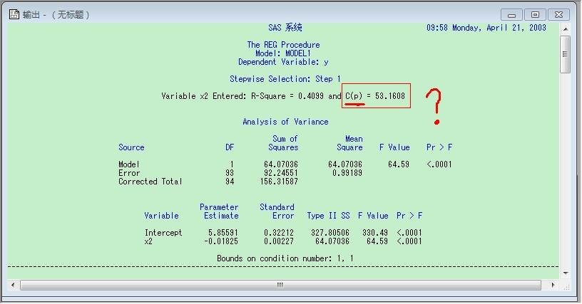 sas逐步回归分析结果c(p)是什么意思