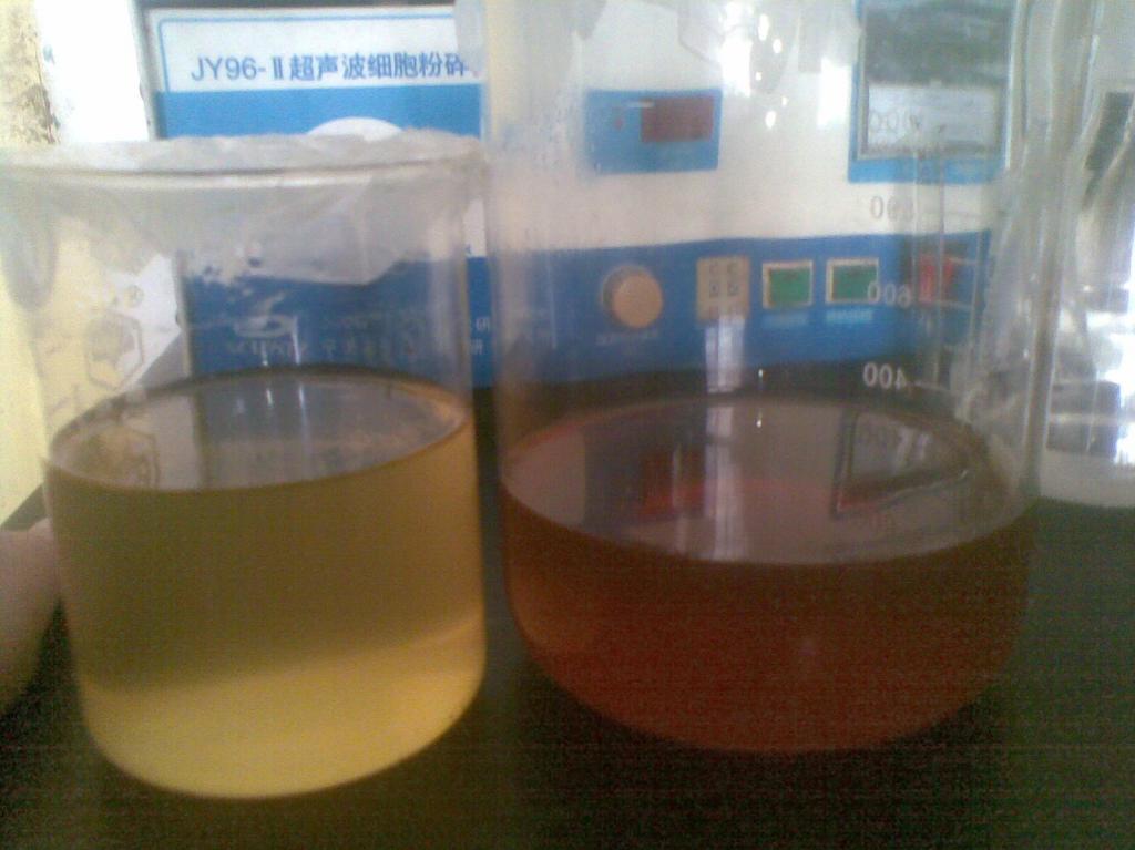 我的发酵液是淡黄色的,加无水乙醇出去糖和蛋白,然后用旋蒸出去乙醇,发现旋蒸后的发酵液颜色变深了,成棕黄色了,这种现象怎么解释呢?是乙醇与某种物质在加热条件下产生色素了吗?求高手指点 20130425(001).jpg |