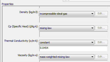 选择了 incompressible -ideal-gas后会默认求解能量方程,那么我的cp(specific heat)和thermal conductivity 应该怎么填呢?是默认不改吗?我的混合不涉及反应。