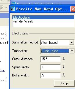 The bonded and the short-range (vander Waals) nonbonded interactions between the atoms were modeledusing the Universal Force Field (UFF). In UFF, bond stretching is described by a harmonic term, angle bending by a three-term Fourier cosine expansion, torsions and inversions by cosine-Fourier expansion terms, and the van der Waals interactions by the Lennard-Jones (LJ) potential. A cutoff distance of 12 Å was used for the LJ interactions.The long-range, electrostatic, interactions, arising from the presence of partial atomic charges, were modeled using a Coulombic term. The Ewald sum method was used to compute the electrostatic interactions. Partial atomic charges were derived from the charge equilibration method (QEq) as implemented in Forcite. ¸Õ½Ó´¥forcite £¬ËùÒԺܶ಻̫¶® Õâ¶Î»°ÀïÃæ In UFF, bond stretching angle£¬ bending£¬ torsions and inversions£¬van der Waals interactions ÕâЩ¶¼ÊÇÔõôÉ趨µÄ ÎÒÕÒ²»µ½Ïà¹ØµÄÉèÖà »¹ÓкóÃæµÄһЩÃèÊöEwald sum method£¬ ÊÇÔÚgeometry optimizationÀïÃæÉèÖÃÂð ¹òÇó¸÷λ´óÉñ£¬ |