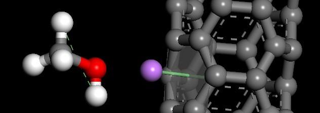 如图MS中 左边是一个甲醇 右边是一个碳纳米管 碳纳米管的其中一个六圆环中心的上方是一个锂原子 我现在想把甲醇的C,—OH,以及锂原子放在一个平面上 并将羟基的中O—H键的中心与锂原子在图中箭头所在的直线上 该如何操作 求指导