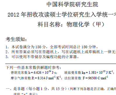 中科院2012分析化学考研真题(简答加计算),物理化学甲回忆版真题