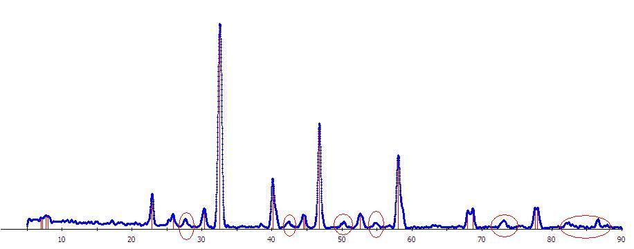 制备了一种材料,没有标准图谱,审稿人建议用精修。 在使用XMS当中遇到一点问题:扣背底(background remove)、平滑(smooth)以及strip之后,在indexing的过程中有些峰没有被识别(如下图)。怎么办? 问题比较肤浅,因为之前没有接触过,属于初学,并且时间紧迫,希望各位大侠赐教!感激不尽!! 图片1.jpg |