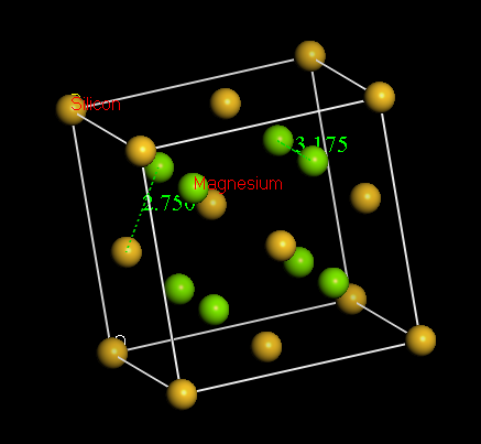 晶胞参数来源于http://www.docin.com/p-112212900.html 给你个键长数据吧,键能我不会算 Mg-Si键长2.750埃,Mg-Mg键长3.175埃 |