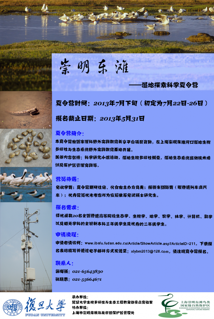 [原创]2013年复旦大学“崇明东滩湿地探索科学夏令营”招生启事