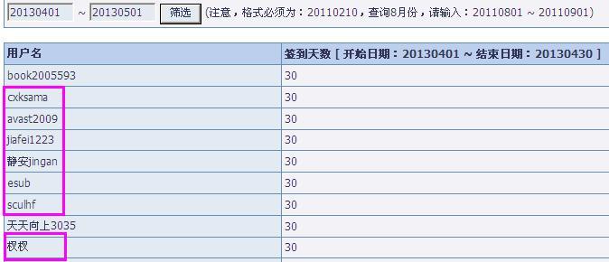 ![]() ![]() 全勤版主名单(共7人,签到30天): cxksama, avast2009, jiafei1223, l静安jingan, esub, sculhf, 杈杈, ![]() ![]() 每人奖励0.02VIP! 2013年4月签到情况~ |