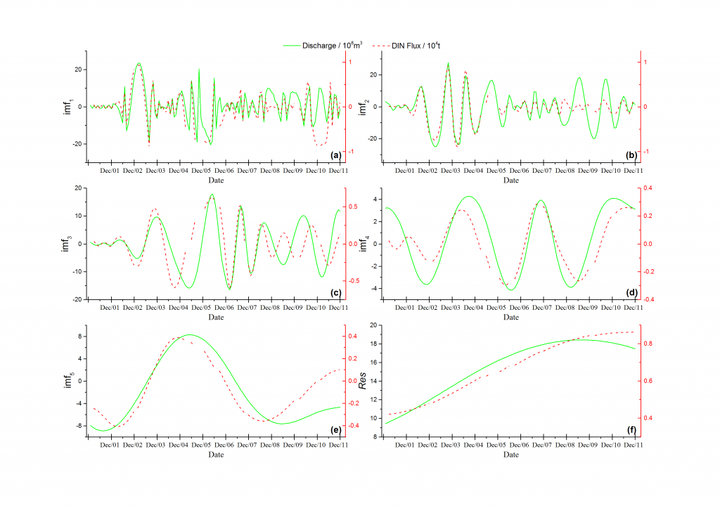 用EMD做的图。其中DIN在整个时间序列上缺了中间个把月的数据,所以不连续。求高手点评!谢谢!