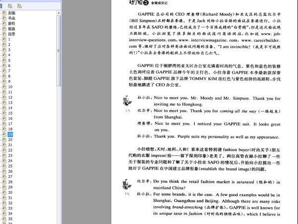 内容简介 本系列图书采用新颖的编写手法,通过杜小拉这个人物在外企打工的经历,来描述数十个工作常用场景的英语对白,并加入虚构的情节,使得读者在娱乐中获得学习的体验。丛书分为菜鸟人职记、白领奋斗记、金领成功记三部,分别涉及刚刚人职、晋升及发展、职业瓶颈及突破等阶段的职场英语,语言地道、人物丰富、个性鲜明、故事连贯、结构新颖,书中所体现的时尚气息符合当代年轻白领和大学生的欣赏口味。 《杜小拉职场英语之金领成功记》为杜小拉职场英语系列中的金领成功记,可供资深以及想要提高职场英语水平的白领人士阅读。 《杜小拉职场英语之金领成功记》由朱绮等编著。 目录: 话题一 成功跳糟 场景一 职业瓶颈 场景二 与猎头接触 场景三 高级职位面试 场景四 讨论职场潜规则 话题二 团队建设 场景五 领导艺术培训 场景六 新人招聘 场景七 内部提拔中层人员 场景八 解决争端 话题三 发展战略 场景九 外包IT服务 场景十 收购本土品牌 场景十一 裁员和补偿 场景十二 电子商务 话题四 公关危机 场景十三 发生危机 场景十四 解决危机 话题五 纽约述职 场景十五 飞往纽约 场景十六 人在纽约 场景十七 温柔的对手和强硬的对手 .. 1.jpg 2.jpg [ 来自科研家族 皇家神龙教 ] |