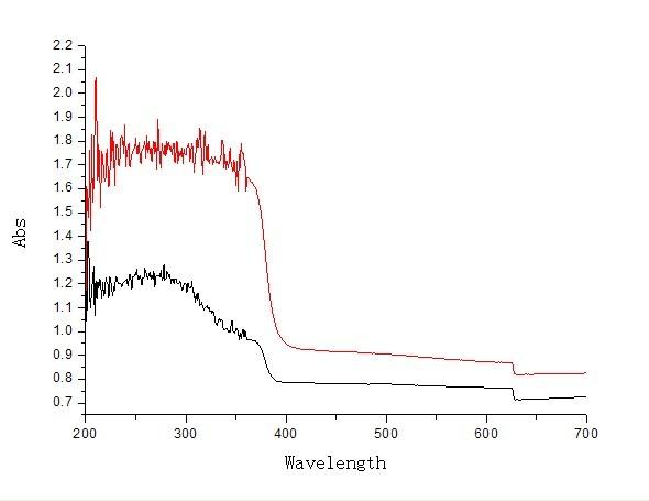 小弟刚做了一个粉末催化剂的紫外漫反射,红色的表示原来合成的样品,黑色表示是改性过后的漫反射图,帮我看看那个光催化效果好,刚接触这个。请大家帮忙分析分析。