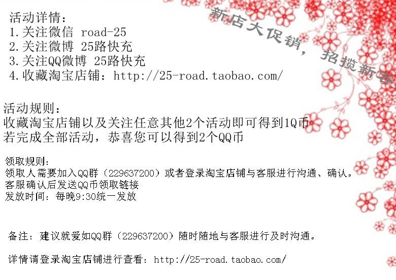 帮小弟做下宣传,店铺刚开业,充话费,送QQ币,欢迎光顾!
