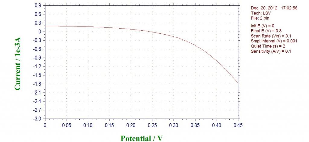 绿色的应该接Pt电极,红白对接工作电极吧,可是反过来,绿色的接工作电极,红白对接工作Pt电极,J-V曲线还是这样的