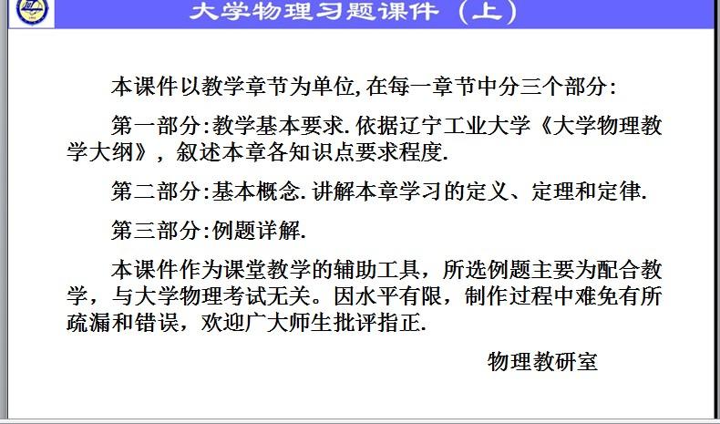 【求助】以华南农业大学的习岗老师的《大学基础物理学》为教材课件PPt~