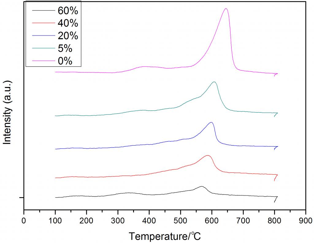 在向CaO中掺杂同一种稀土元素氧化物时,CO2-TPD的峰位出现了向低温移动的现象,不知道这应该怎么解释呢? 图例的百分含量是掺杂氧化物的质量百分含量, 数据汇总-TCD-temperature.jpg |