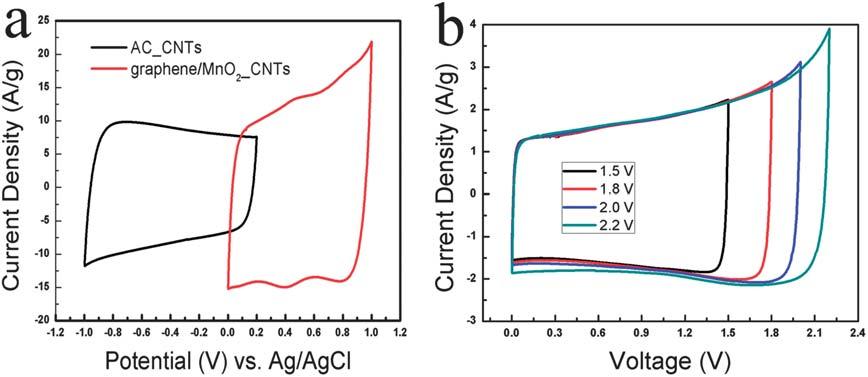 不对称超级电容器工作电压设置问题,看到文献上都是先用三电极分别测试单电极,然后组装不对称超级电容器,为何-1~1V的电压摇身一变成了0-2V了?也没必要移动坐标啊,也不是参比电极的原因,为正负极的过电位可以综合到一起? 请各位专家指导! CV.jpg |