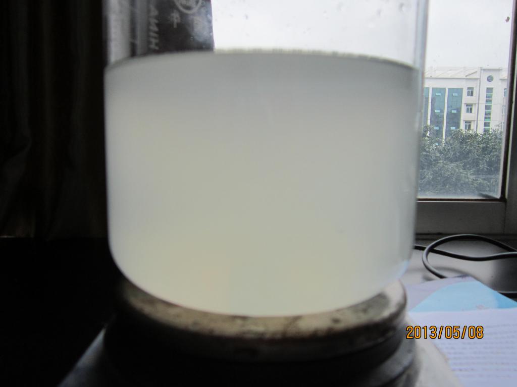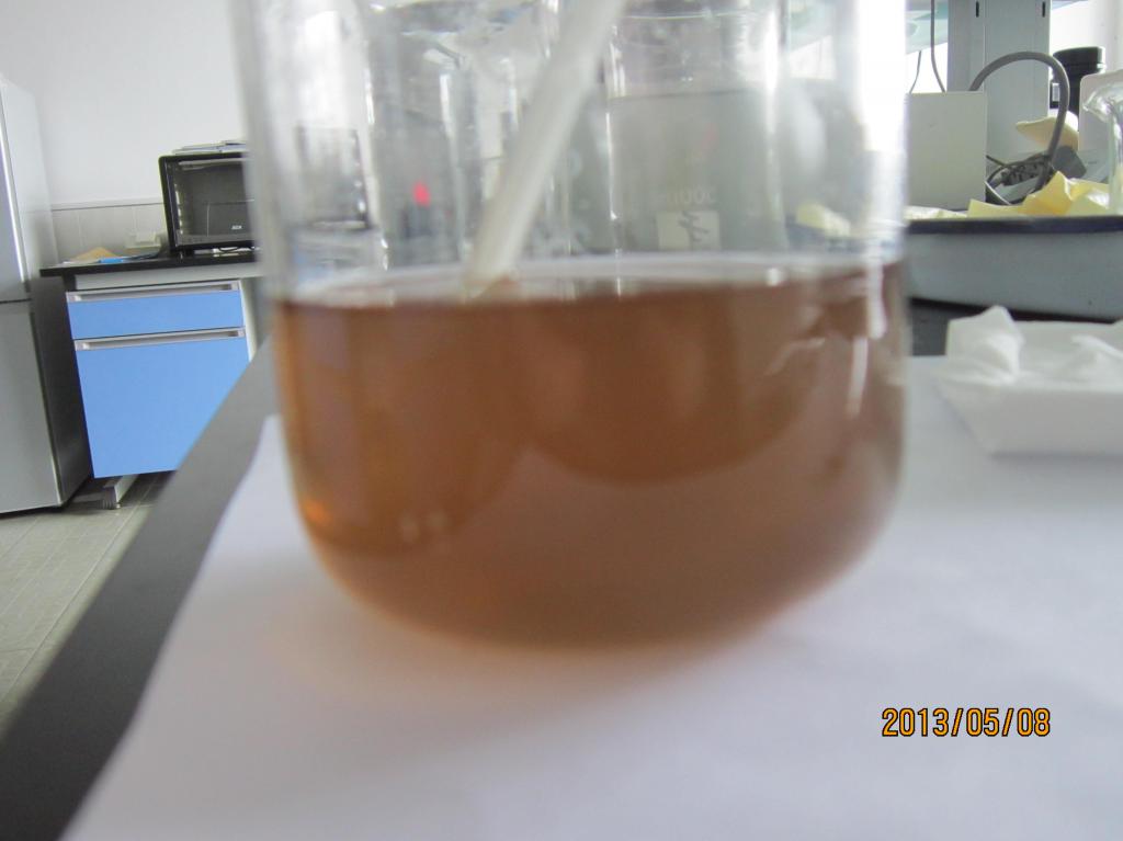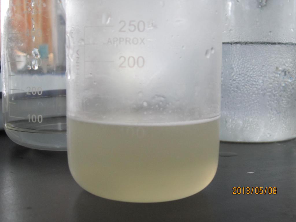 我最近在做纳米纤维素,用的是64%(w/w)的浓硫酸,以微晶纤维素为原料。加热之前颜色还可以(a),等加热45 min后,变色了(b),加十倍水终止反应后颜色为(c),我用的是10000 rpm李离心20 min,但没发现有沉淀,每管离心 10ml,大概放了七八个小时出现了絮状悬浮物。请各位神人们帮帮忙吧,看看问题出在哪了? a.JPG b.JPG c.JPG d.JPG |