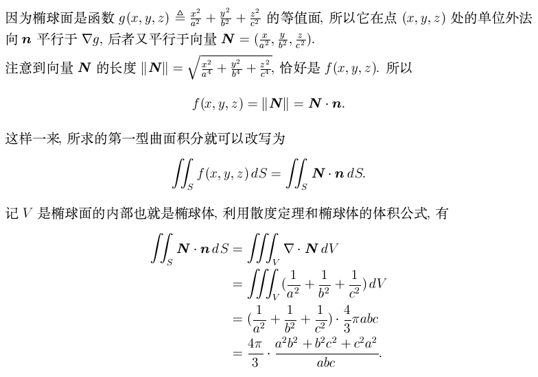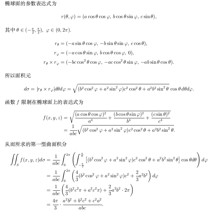 小弟有一曲面积分实在积不出来(文献中给出了积分结果,但我想知道过程)。 对函数:F=(x^2/a^4+y^2/b^4+z^2/c^4)^(-0.5) 进行曲面积分,积分曲面为椭球面:x^2/a^2+y^2/b^2+z^2/c^2=1,小弟跪求高人指点。万分感谢! |