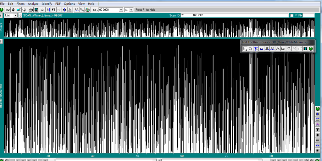 同一个XRD的TXT数据文件在jade5中与Origin中的图形差别很大。怎么回事?
