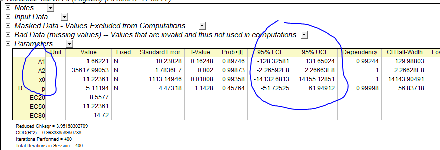 使用OriginPro 8进行Logistic回归时,怎么显示ED50和95%置信区间?
