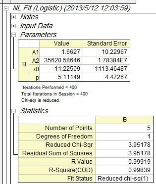 我监测杂草抗药性,是根据不同药剂浓度,得到芽长长度不同,算出抑制率,进行双逻辑非线性回归模型进行分析, 目前在学习使用OriginPro 8,抗性实验数据的分析用到Logistic回归, 模型:y=A2+(A1-A2)/[1+(X/Xo )^p],但是我输入数据计算后不显示ED50和95%置信区间。求指点怎么操作OriginPro 8! 如下方2组数据:左边的是一组浓度对数,X;右边是一组抑制率*100,Y ;求帮忙指点,怎样使用Origin 8计算,得到ED50和95%置信区间。 2.097 8.19 2.398 14.68 2.699 27.50 3.000 42.26 3.301 70.23 感激不尽!!!!拜谢!!!!! ![]() 我是这样分析的:Analysis - Fitting - Nonlinear Curve Fit - Open Dialog Category:Growth/Sigmoidal ;Function:Logistic - 点Fit 得到如下结果 Value Standard Error 1.6627 10.22967 A1 35620.58 1.78384E7 A2 11.22509 1113.46487 Xo 5.11149 4.47267 p 求指教,这样计算是否正确?如果不对应该怎么设定?如何得出95%置信区间和ED50? 再次拜谢各位大神!!! ![]() ![]() ![]() ![]() [ 来自科研家族 快乐家族 ] |