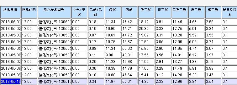 | FCC催化裂化得到的C3组分中丙烯的含量 |