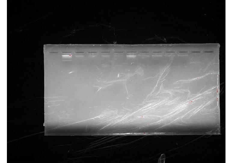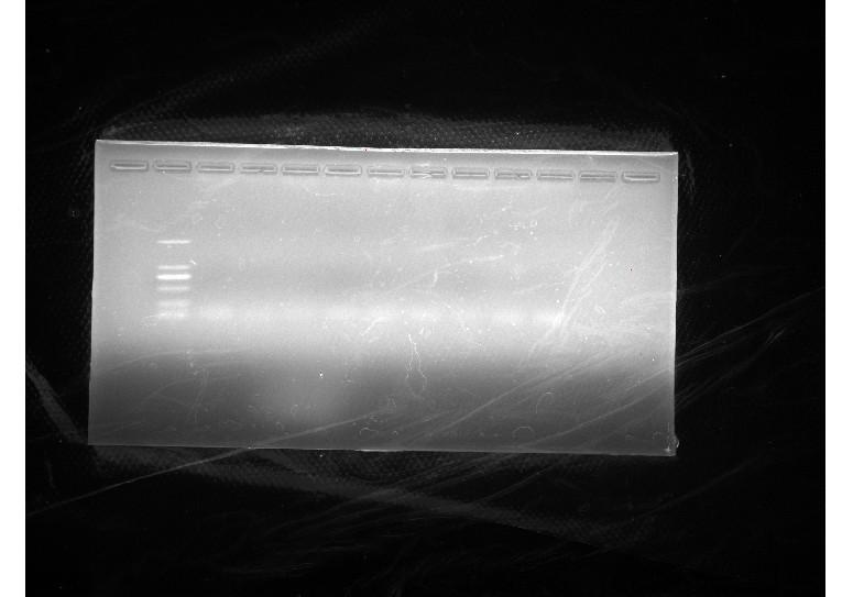 用OMEGA试剂盒对土壤进行提取DNA,后进行跑胶,再进行PCR检测,用的通用引物27f,1492r,各2ul,模板5ul,supermix25ul,ddh2o16ul,95。5min,95。30s,50。45s,72。1min,35个循环,72.10min。不知道扩增出了没,不太懂,希望大家多指导下,O(∩_∩)O谢谢![]() 提取DNA后分装后合并起来后又跑的胶 PCR后的效果 |