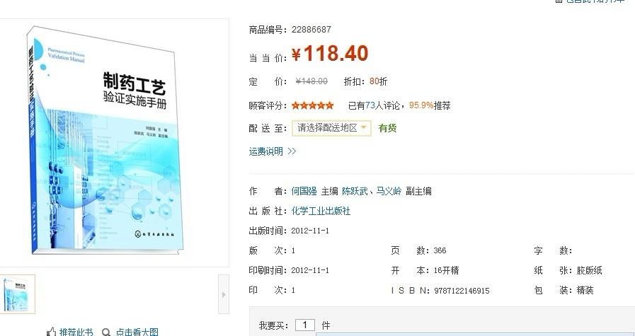 转让:何国强主编《制药工艺验证实施手册》