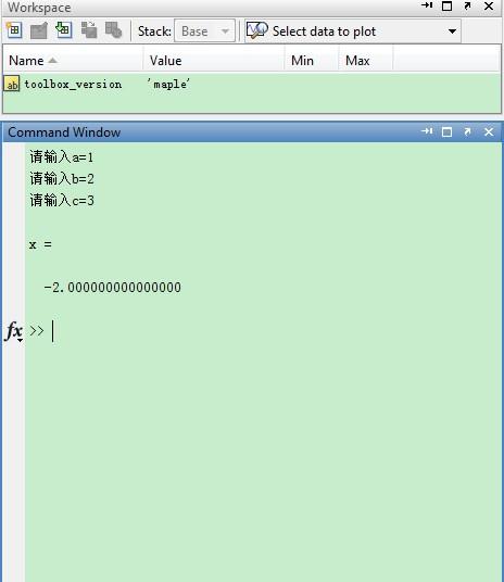 以下m文件,直接复制进一个m文件中,运行即会在主窗口等待你输入a,b,c的数值。结果见附图1。 function solvenole314 clear all;clc global a b c format long a=input('请输入a='); b=input('请输入b='); c=input('请输入c='); x= fzero(@fun314,[-5]) %-------------------------------- function y=fun314(x) global a b c y=a*x+b/x+c; 解方程组的情况,可参考http://muchong.com/bbs/viewthread.php?tid=5815452&authorid=1122189 附图1.jpg |