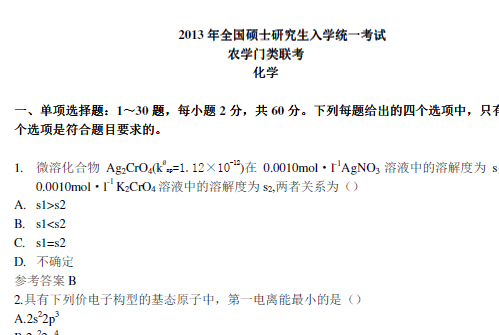 求历年315化学(农)真题
