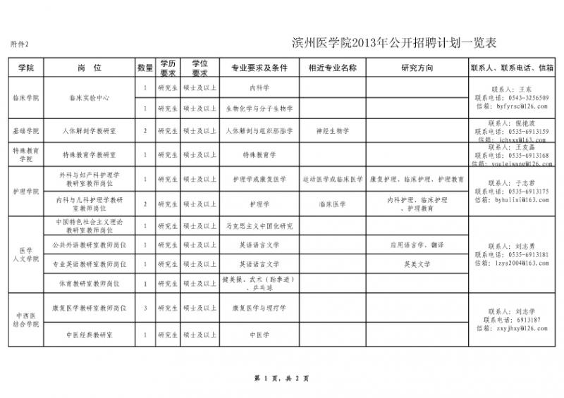 滨州医学院2013年公开招聘启事 根据工作需要,滨州医学院面向社会公开招聘工作人员,此批招聘计划为29名,之前公布的博士招聘计划可继续组织招聘。 一、 招聘岗位 见《滨州医学院2013年公开招聘计划一览表》 二、招聘要求 1.岗位要求:岗位要求见招聘计划一览表,详细岗位要求请咨询各学院或相关部门。 2.报名形式:网上报名。 应聘人员填写《滨州医学院公开招聘报名登记表》,同时提供相关材料的电子版或扫描件,同时发送至人事处、相关学院或部门电子信箱,邮件名称统一为“姓名-学历-应聘岗位”。 3.报名时间:报名截止日期为2013年5月25日。 4.招聘方式:将根据岗位需求及学科发展需要,对应聘人员的基本条件、专业方向、科研水平等条件进行审查筛选,对筛选合格人员采取笔试、面试、综合考核等形式进行考核。 5.招聘时间:以学院、部门为单位于5月30日前集中组织招聘,具体日期由招聘单位通知应聘人员。 6.待遇:相关待遇按照《滨州医学院人才引进暂行管理办法》执行,其他待遇执行山东省相关政策。 三、学校联系方式 联系部门:滨州医学院人事处 联 系 人:郭 晶 联系电话:0535-6913057,6913056(传真) 电子信箱:byrsc@163.com 通信地址:烟台市莱山区观海路346号 邮 编:264003 |