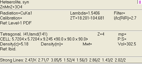 | 上传XRD的一个RAW文件,麻烦虫友们分析一下,拜托啦!看看是否是ZnMn2O4。给出个标准卡片图。谢谢啦 |