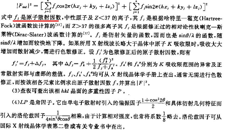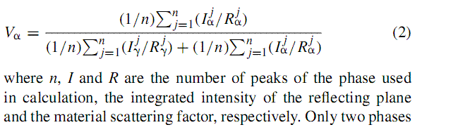 在304不锈钢马氏体含量的XRD测量计算中,文献中的计算公式涉及到material scattering factor的求解,但是对这个计算公式如何使用,里面参数的具体含义以及如何取值不了解,在这里向大家求助,希望有好心人解答一下。公式在图中。 公式.GIF |