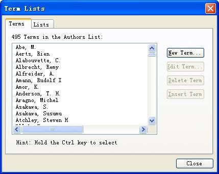 tools-------define term lists-----------------选terms--------------对话框右边可以添加,编辑和删除------
