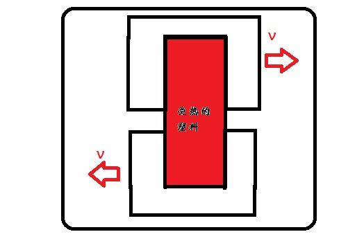 我需要考虑的问题是这样的.如图所示。上下两个槽卡住受热的塑料,需要考虑塑料能不能被剪断。这个应该是考虑拉伸还是剪切?