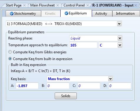 aspen中CSTR反应器中的Equilibrium反应