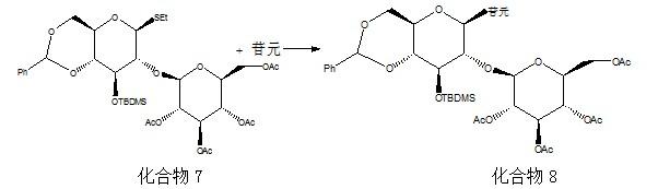将化合物7和苷元用甲苯带水三次,加入无水二氯甲烷中溶解,加入4A分子筛在氮气下搅拌30分钟。再于-15℃条件下加入NIS(N-溴代丁二酰亚胺),15分钟后加入TMSOTf(三甲硅基三氟甲磺酸脂),搅拌1小时。。。 1@Z$~A65]A7Y(5TH5`RR__O.jpg |