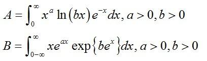 这里有两个求定积分的问题,经验证,求解出其中一个,另一即可解决。不知哪位高手能给出其中任何一个几何的解析表达的积分结果。对感兴趣的高手给出结果者赠予50金币。