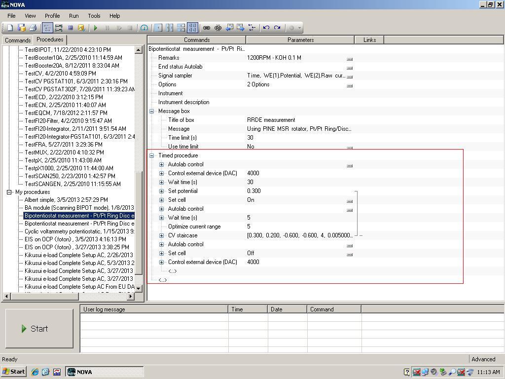 各位虫子,请问如何通过Nova设置autolab来实现旋转圆盘圆环电极测试(RRDE)? 就是如何控制WE1和WE2 来分别控制电位,得到如图一的电势曲线,然后控制盘电极和环电极来测试电子转移数? 图二是那个设置参数的截图,请问如何设置呢,非常感谢,金币奖励~ 图一.jpg 图二.JPG |
