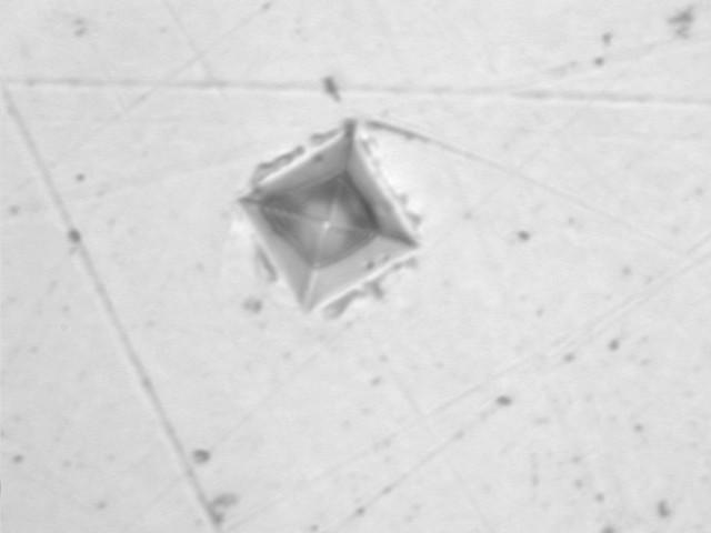 显微硬度仪出现如图的压痕,是怎么回事,求指点