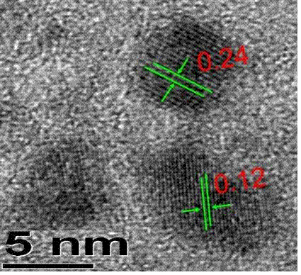 下面是纳米铋的表征图,XRD显示为rhombohedral结构,高分辨率TEM发现0.24纳米对应XRD图中的012晶面,0.12纳米对应110晶面,但选取衍射上的衍射点不会标定,求大牛指点迷津。 XRD.GIF HRTEM.GIF yanshe.GIF |