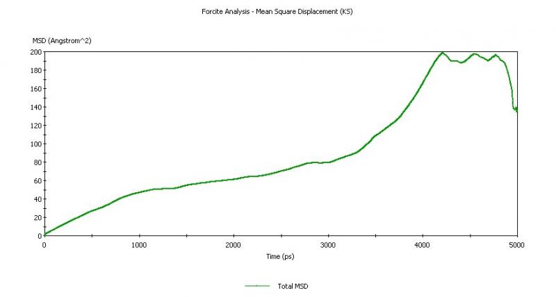 你能不能跑更长一点的simulation再重算一遍试试? 因为假如你只有5 ns的数据,而如果你要算MSD在4 ns的值,那样本数相对少了点,所以数据可能有误差。 换句话说,你有5 ns的数据,以1 ns为间隔采样算msd。那么对于msd 在1 ns的值,你可以计算0-1ns, 1-2 ns, 2-3 ns, 3-4 ns, 4-5 ns区间上的值然后取平均。但是假如你要计算msd 在 4 ns处的值,你只能在 0 -4 ns, 1- 5 ns上取样,样本数少了,计算可能有误差。 |
