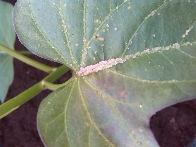温室中确实有粉虱的存在,但是图片中的甘薯是我从外面采集的,放在虫笼种种植,而且几乎都有,我怀疑是基质中有什么虫卵之类的,但是粉虱不应该在里面啊。