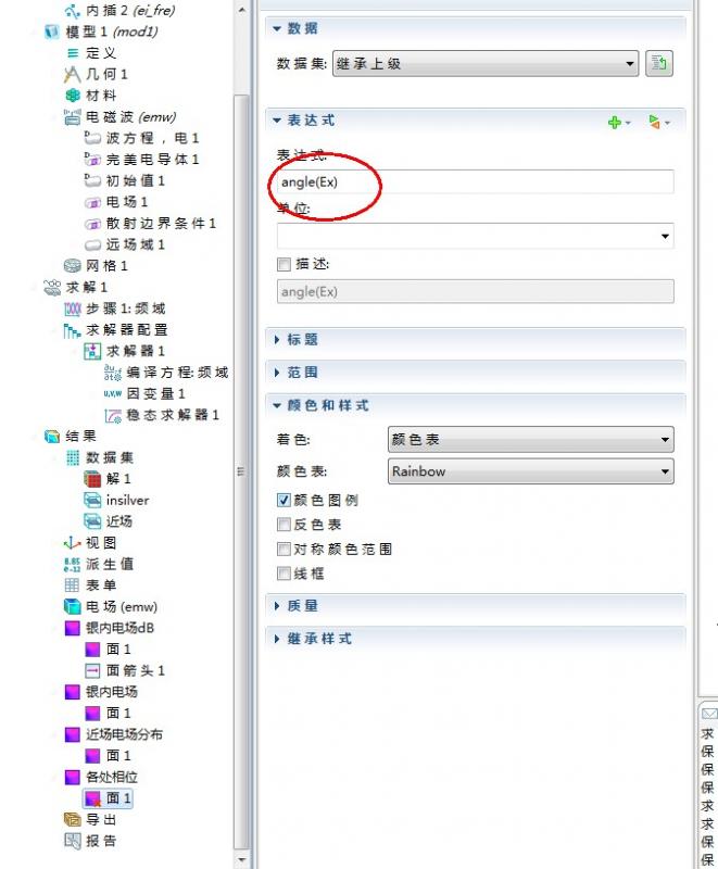 comsol 后处理的时候如何能够将电场的相位提取出来