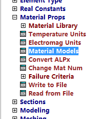 例如:Main menu>Proprocessor>Material Props>stractural>nonliner>inelastic>rate independent>kinematic hardening plasticity>mises ..>multilinear(hill ..)